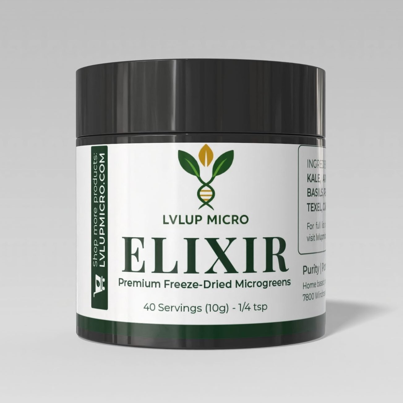 - Freeze-dried at peak microgreen vitality. No additives, no fillers, no preservatives. Just organic, bioavailable life force from the Earth’s youngest greens.